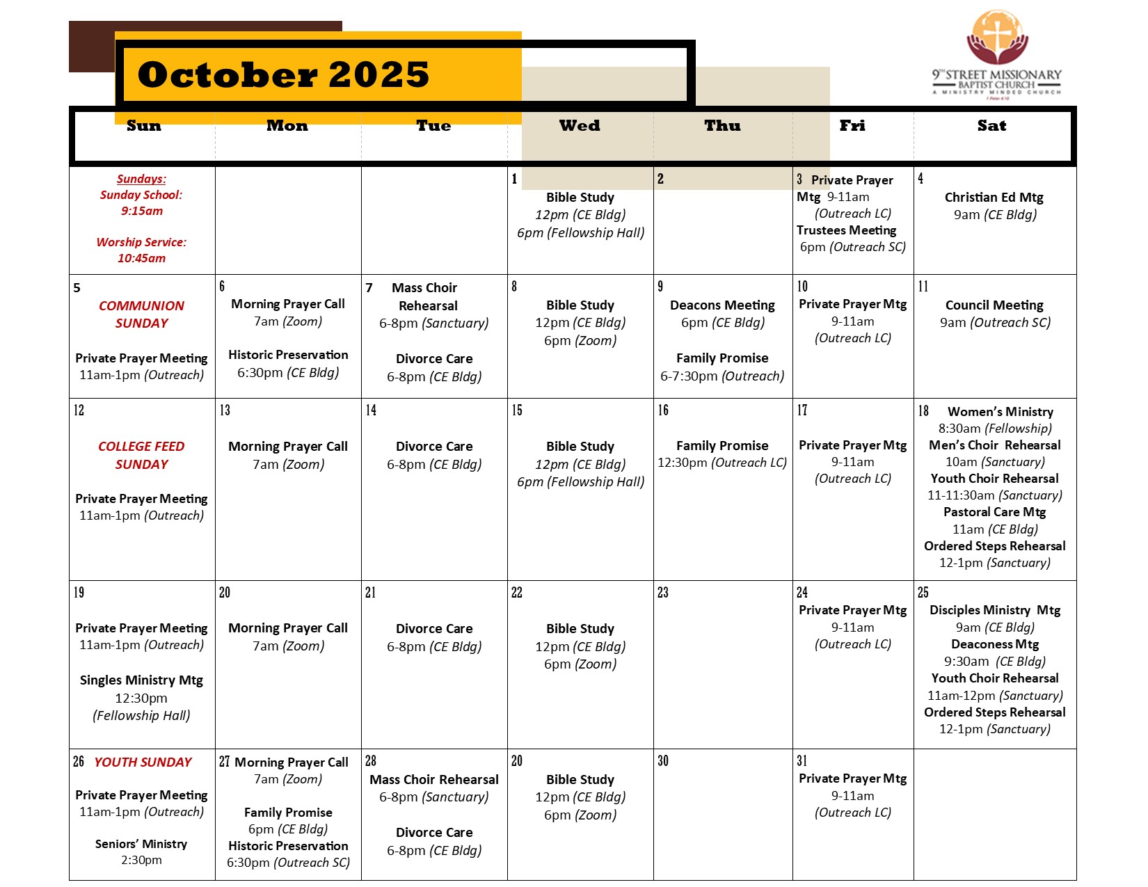 Sunday School 9:15am | Sunday Worship 10:45am | Wednesday Bible Study 12pm/6pm
